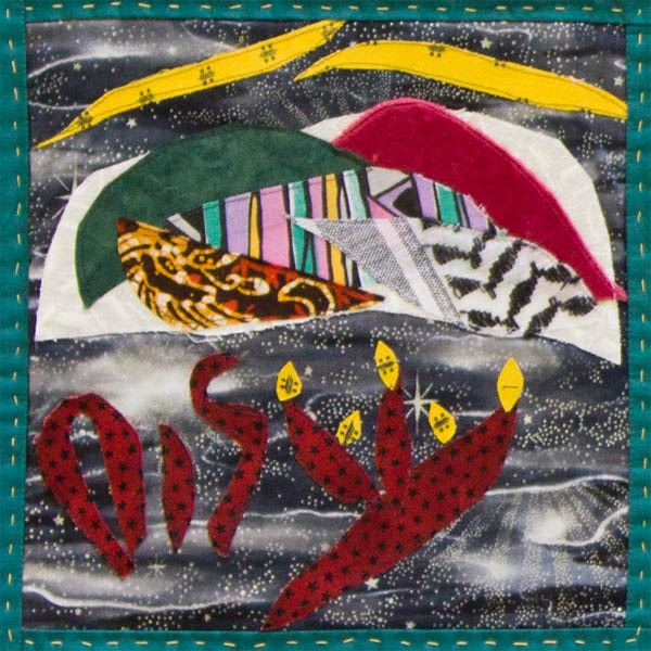 A tent of peace in the desert, made of the fabric of the nations of the Middle East. A Shalom grows out of the Sabra, the cactus.