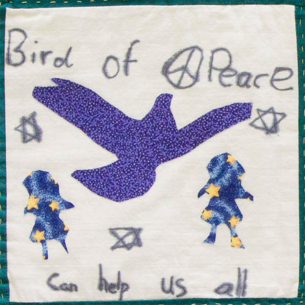 To the third through sixth grade classes of Agudus Achim Religious School, under the direction of Rabbi Tracy Klirs, the meaning of "Middle East Peace Quilt" is simple. We teach "Mitzvot" each month; this month our "Mitzvot" is "Rodef Shalom", (to pursue the peace). We teach that the pursuit of peace is one of the most God-like things we can do. Peace doesn't just happen. We need to seek out peace and make it happen. Discussing and contributing to the Middle East Peace Quilt for this lesson plan was a great way for the children to think of the peace process in the MIddle East, and a wholeness in the world.