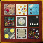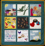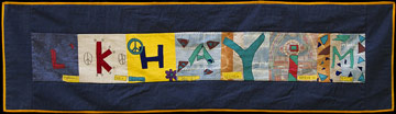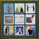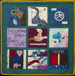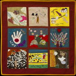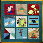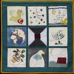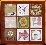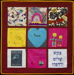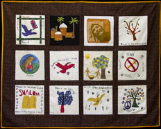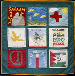 The Middle East Peace Quilt is an international community art project made by over 300 people ranging in age from 5 to 85, including men and women, Jews and Palestinians and professional artists as well as people new to artistic expression. Each square is accompanied by the words of the people who made it. Click on any image to see a larger version of that panel and then on any individual square to see it in detail and read its accompanying statement. All the work on this site is available for travel. Please get in touch if you want to arrange an exhibit.